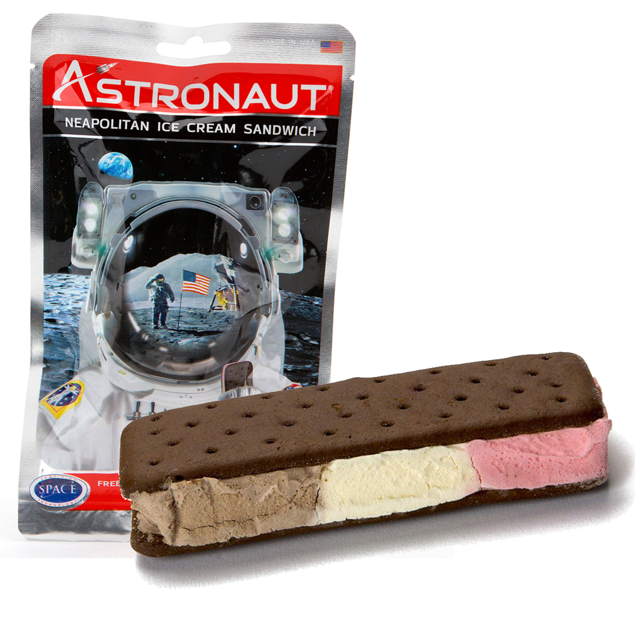 Why choose one flavor for your Ice Cream Sandwich? Have our Neapolitan Ice Cream Sandwich instead. Strawberry, vanilla, and chocolate ice creams are freeze-dried between a couple of delicious chocolate cookie wafers. So good you might not want to share!